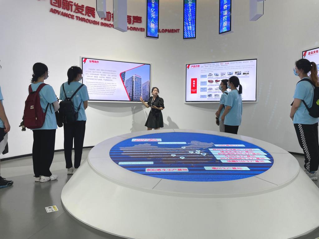 实践中,实践团队参观了智能网联汽车小镇,近距离了解了奇瑞商用车系列高科技零部件和智能产品。在奇瑞汽车焊装和总装车间,实地参观了汽车生产流水线。在学习座谈当中,公司有关负责人向实践团队详细介绍了奇瑞公司的发展历程和企业文化底蕴,奇瑞商用车实施“创富+”经营战略的背景以及价值,并针对开新工坊这一主题从市场趋势、顺势变革、运营升级、成长模型四个模块,讲解了奇瑞的未来转型和创新发展。