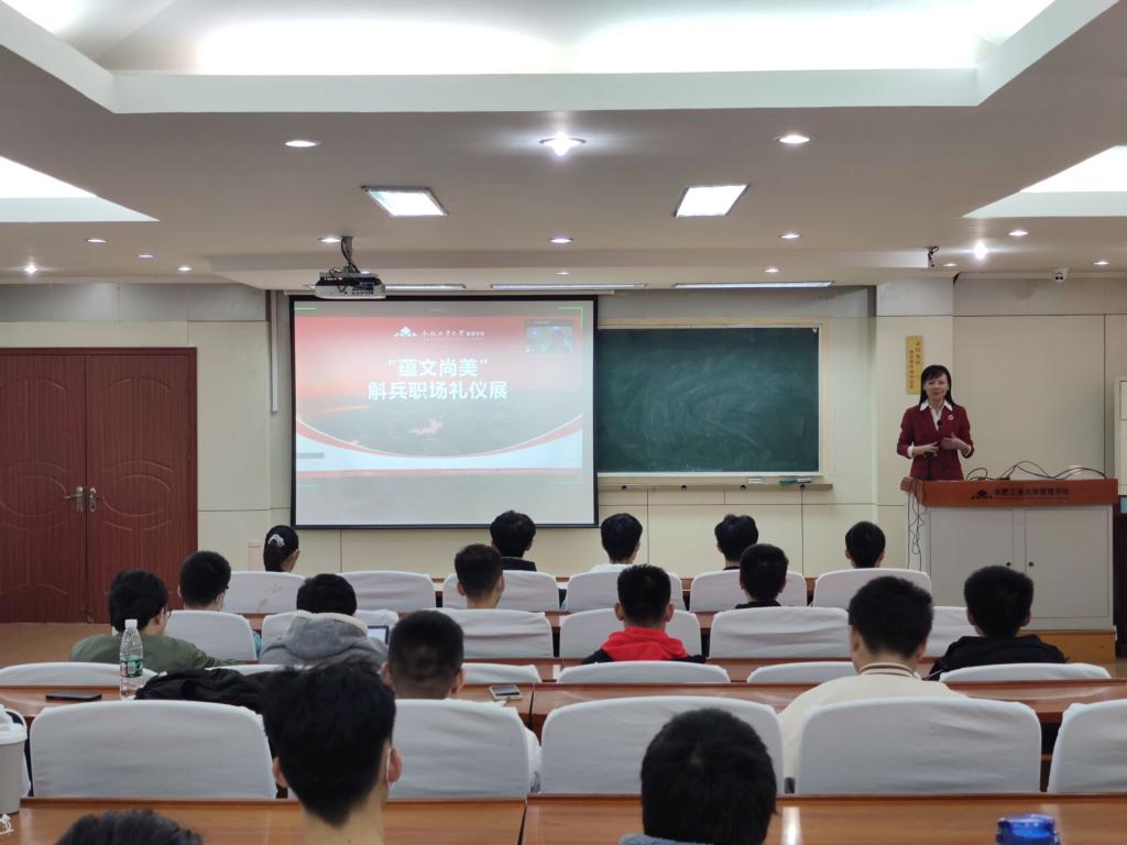 “蕴文尚美”斛兵职场礼仪展,立足中华礼仪之美,着力打造校园礼仪文化,同时聚焦大学生职业生涯发展切实需求,创新性打造礼仪长廊,开展职场礼仪培训和职场礼仪公开课,多渠道多方式引导青年学子知礼,懂礼,行礼。“蕴文尚美”礼仪长廊位于管理一号楼三楼活动厅,欢迎广大同学前来参观交流,丰富礼仪常识,提高礼仪修养。
